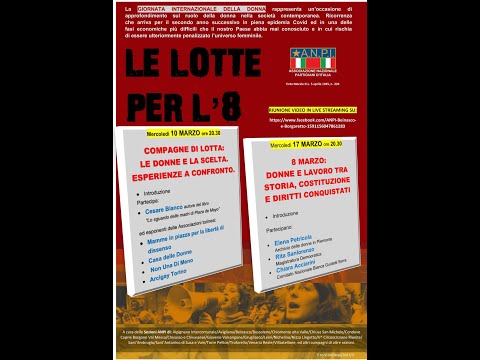 Video dell'incontro "Le lotte per l'8 - Compagne di lotta: esperienze a confronto" (mercoledì 10 marzo 2021), organizzato da 24 Sezioni ANPI dell'area torinese in occasione della Giornata Internazionale della Donna.
